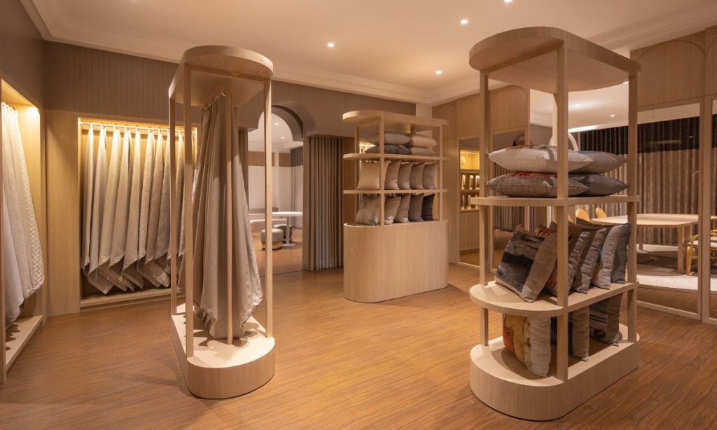 Lokasinya yang bersebelahan dengan Agora Outdoor Fabrics, merek global yang berspesialisasi dalam benang akrilik 100% solution-dyed-fabric eksterior dengan kualitas tertinggi, memberikan pengalaman yang lebih praktis bagi desainer dalam menemukan solusi terbaik untuk interior dan eksterior.