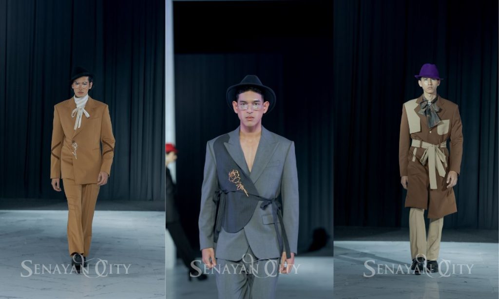 Agus Lim appears to be expressing with this collection that suits may be elegant and official while yet being enjoyable. This is demonstrated by the light brown suit and bow-detailed shirt, which give a traditional look a modern touch. As an alternative, the grey suit has a rose accent, a belt, and pinstripes.
